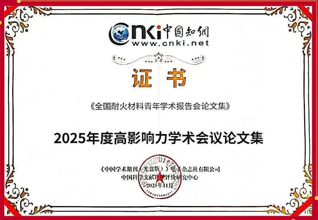中鋼洛耐主辦的《全國耐火材料青年學術(shù)報告會論文集》入選中國知網(wǎng)“2025年度高影響力學術(shù)會議論文集”
